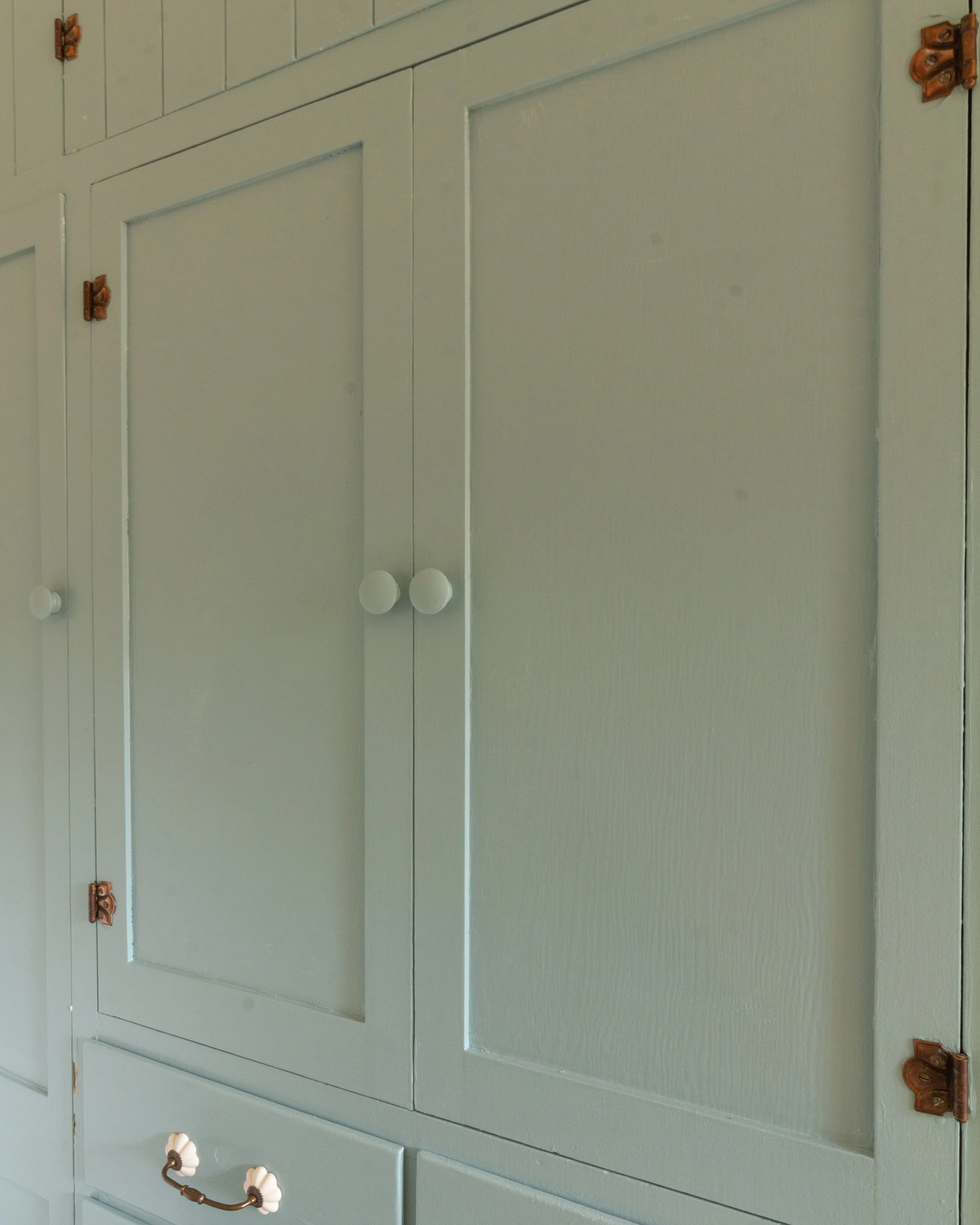 The biggest (and cheapest!) change we made was painting the trim and floors blue. We went with Colonial Aqua by PPG on all the trim, closet doors, and built-ins and Cathedral Glass by PPG on the floors. I love the subtle contrast between the two shades.