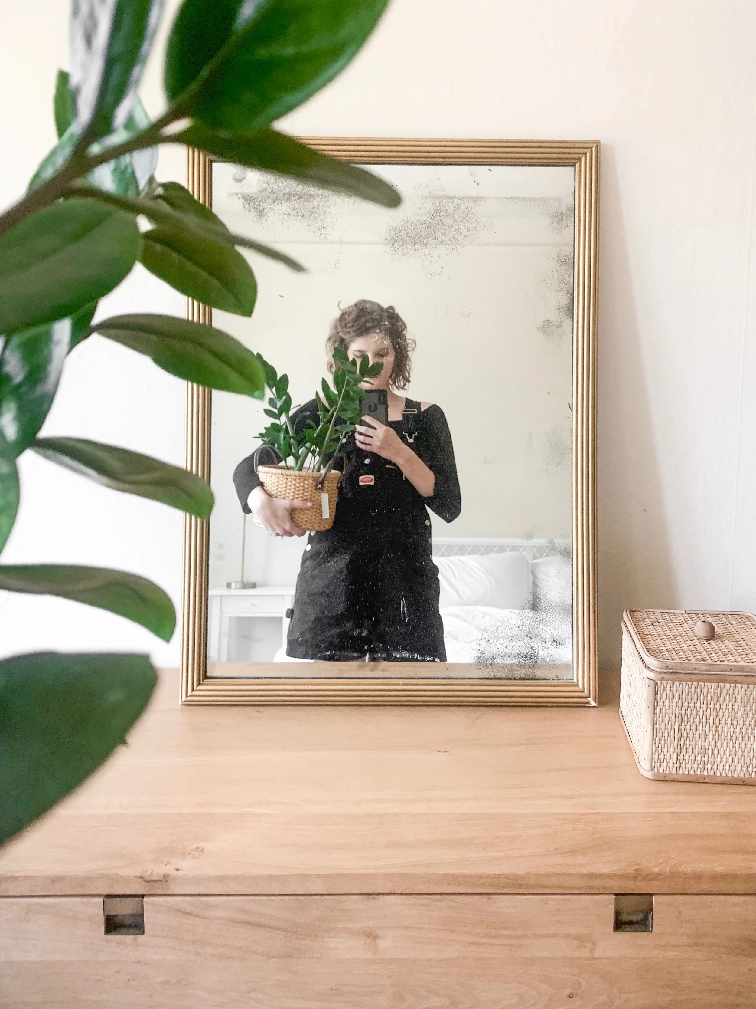 Found these overalls for $4.99, basket for $3.99, and this mirror is an old find that I scored for under ten bucks.